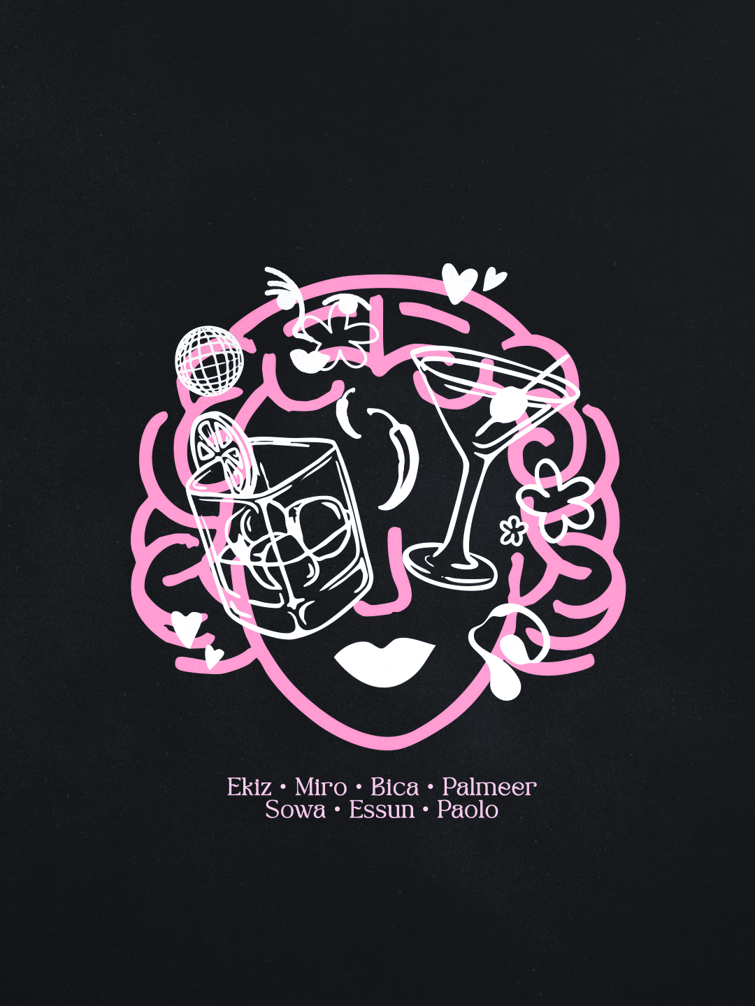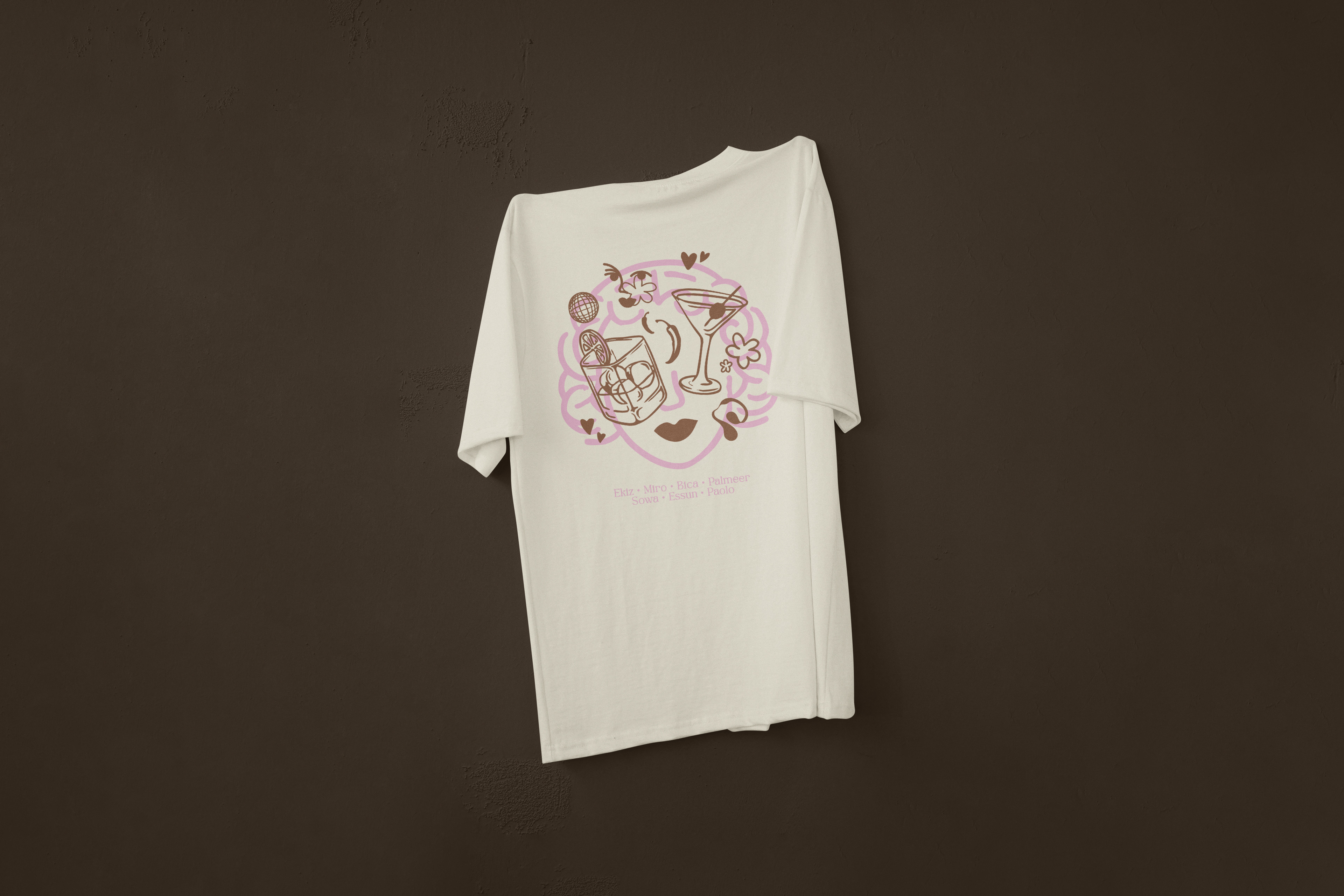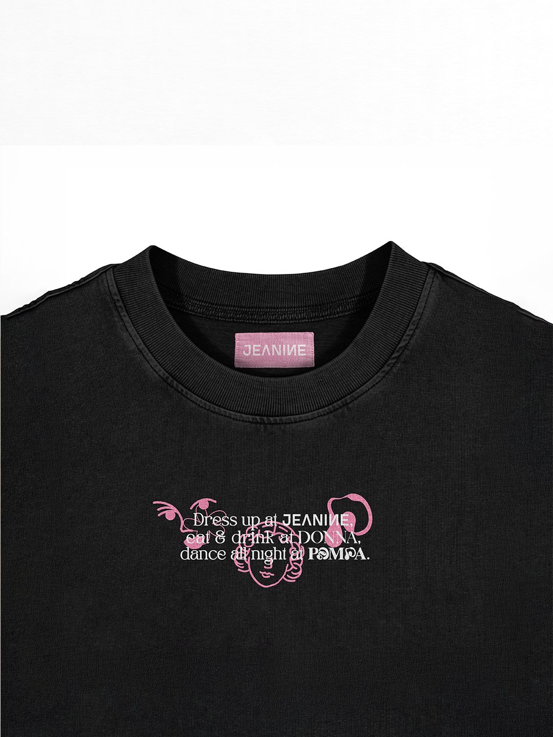 This project presents the design of two T-shirts and one scarf created for a collaboration between the clothing brand Jeanine, the bar Donna, and the nightclub Pampa. The visuals bring together the identities of the three brands through a hand-drawn pattern and a color palette that connects all three entities, creating a cohesive and shared universe.